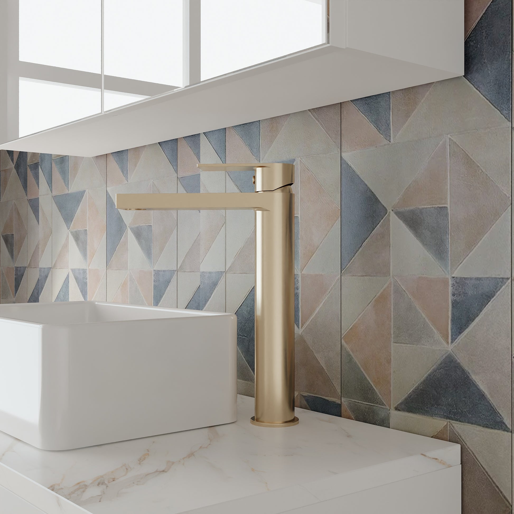 - Sleek high-rise design makes this tap perfect for use with countertop vessel basins