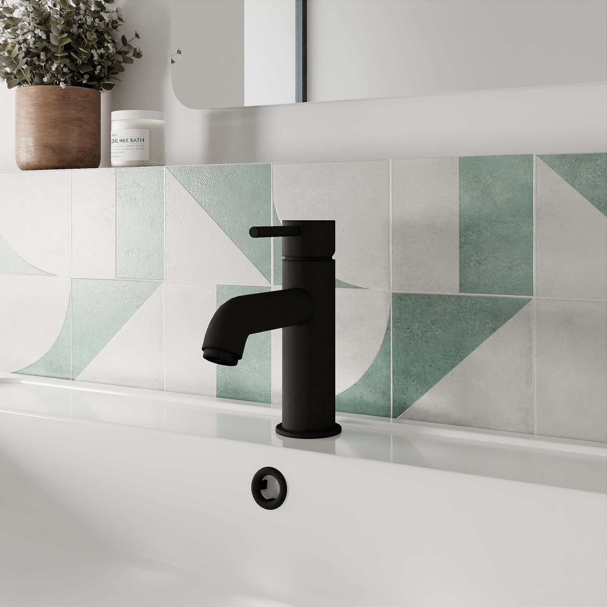 Cartegena Mono Basin Mixer c/w Push Button Waste - Black CAR405