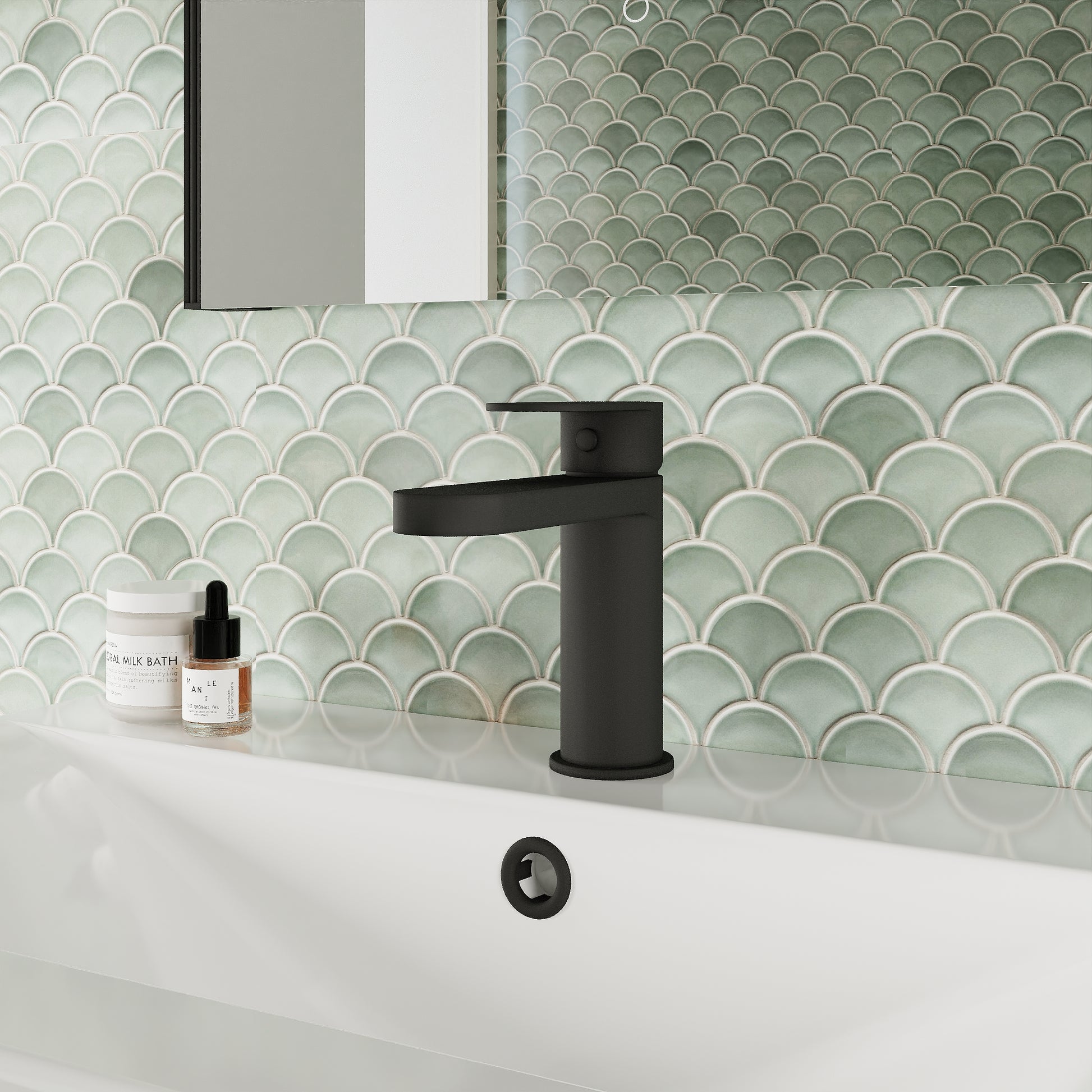 Halstatt Mono Basin Mixer c/w Push Button Waste - Black HAL405