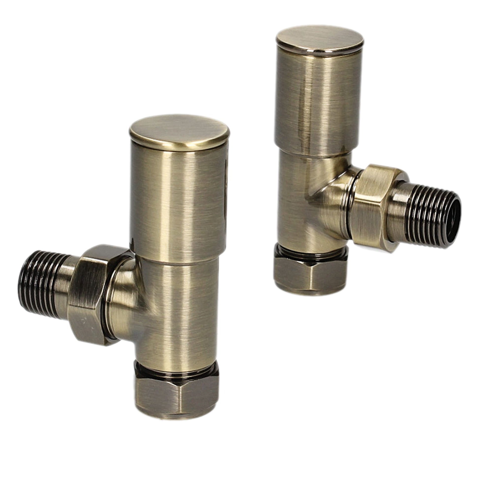 Pair Of HP Heavy Pattern Angled 15mm Radiator Lockshield Valves - Antique Brass