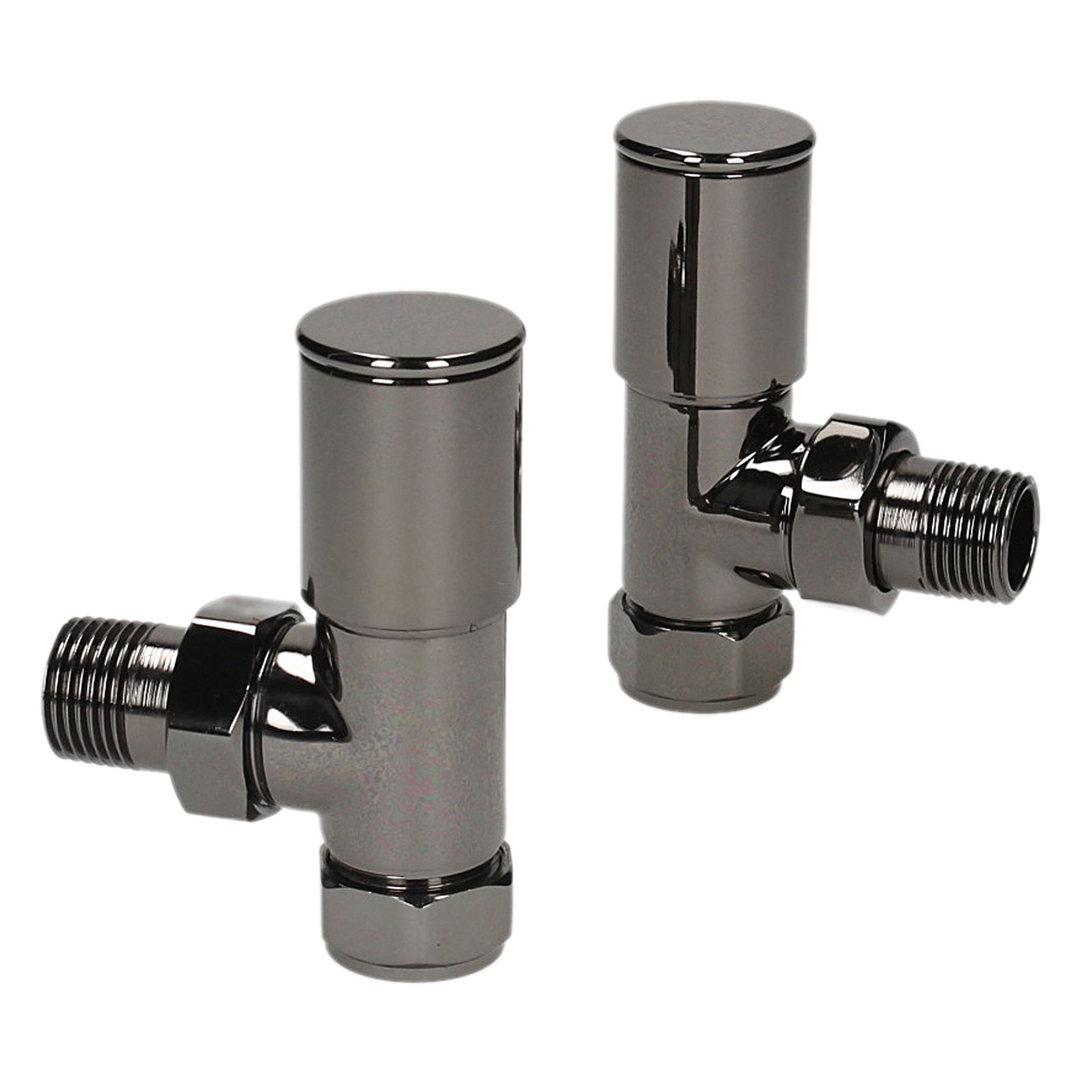 Pair Of HP Heavy Pattern Angled 15mm Radiator Lockshield Valves - Black Nickel