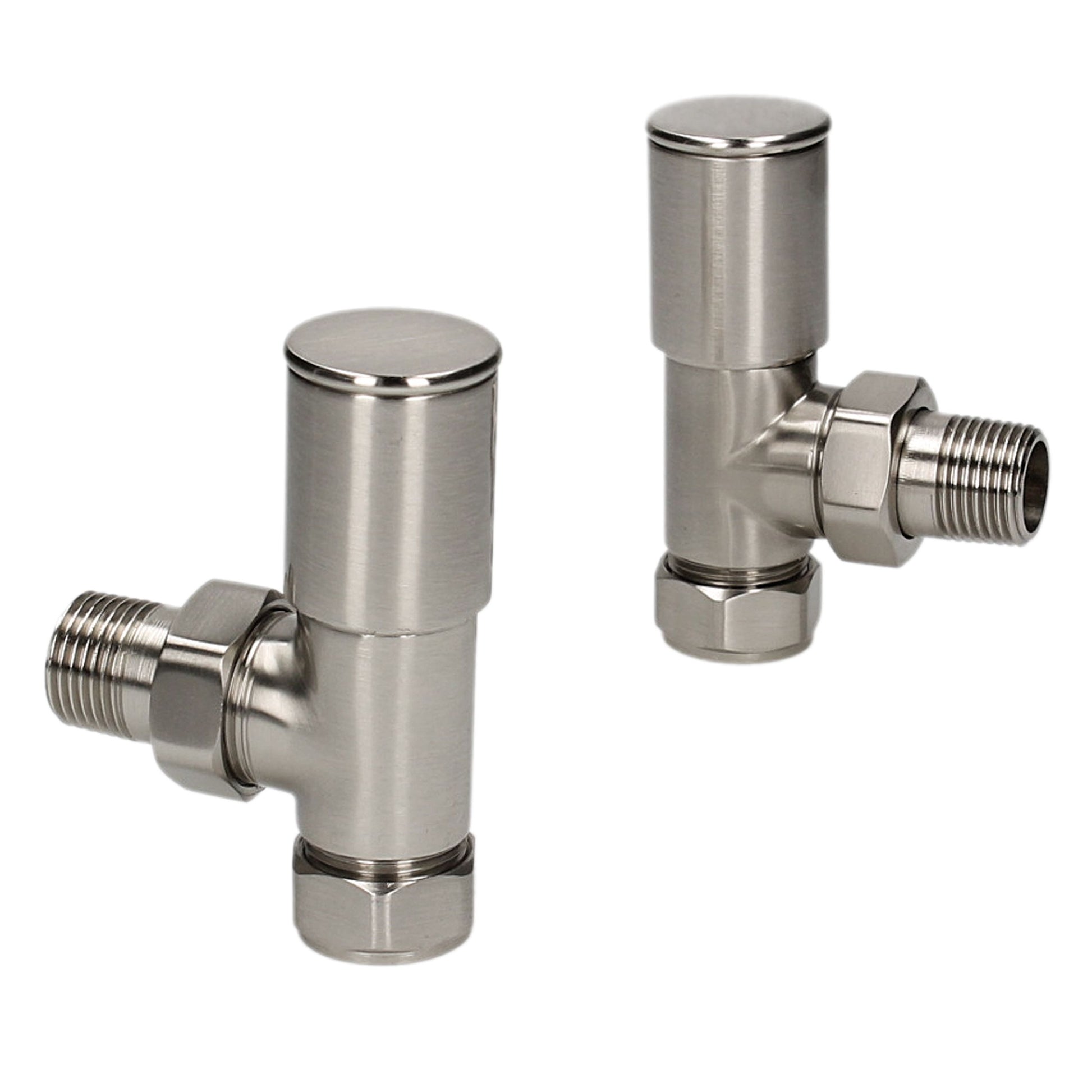 Pair Of HP Heavy Pattern Angled 15mm Radiator Lockshield Valves - Silver Nickel