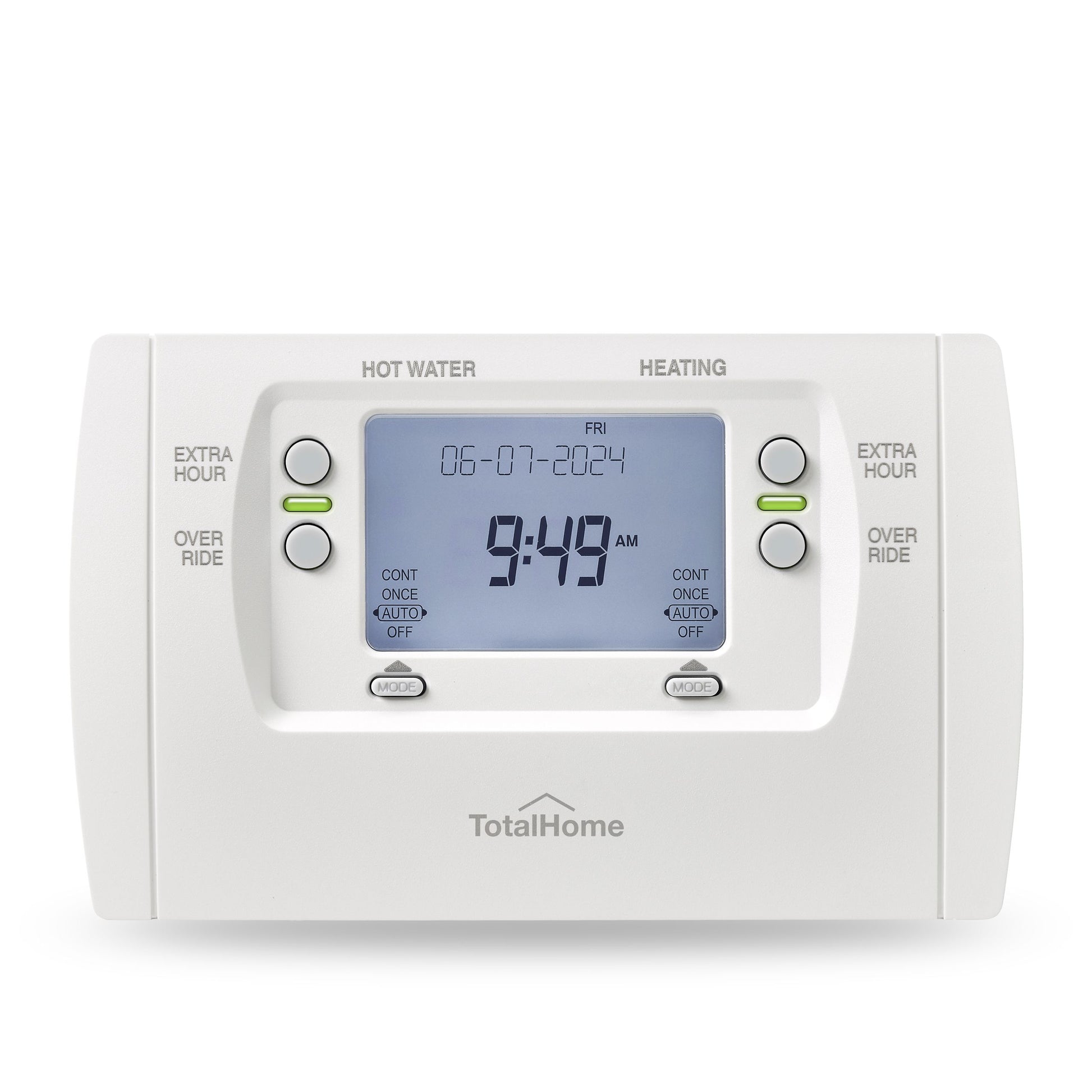The Totalhome 2 Channel 7 Day Programmer is a 2 channel programmer, designed for control of both heating and stored hot water. The heating and hot water programmes are completely independent, to allow the system to be operated as energy efficient as possible.