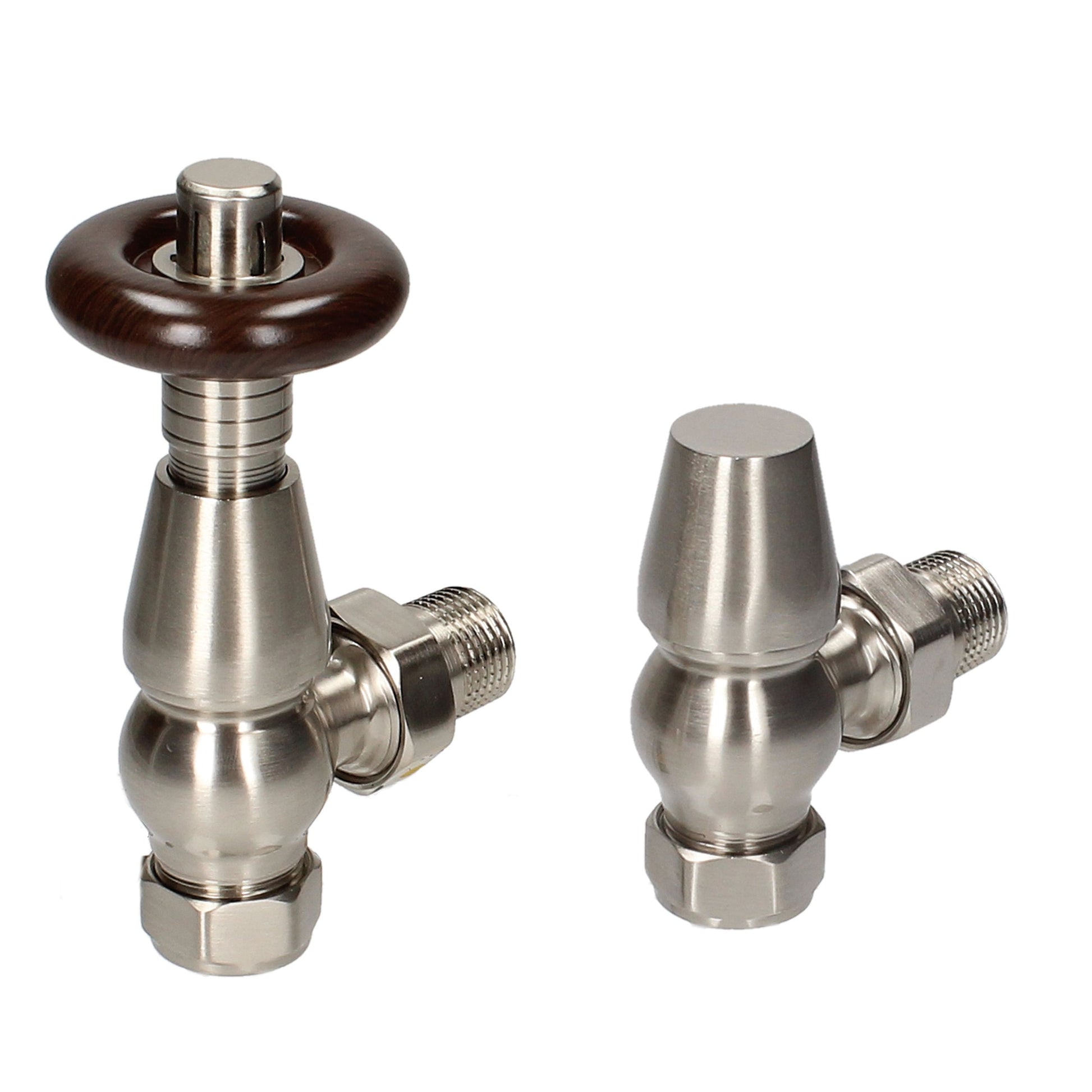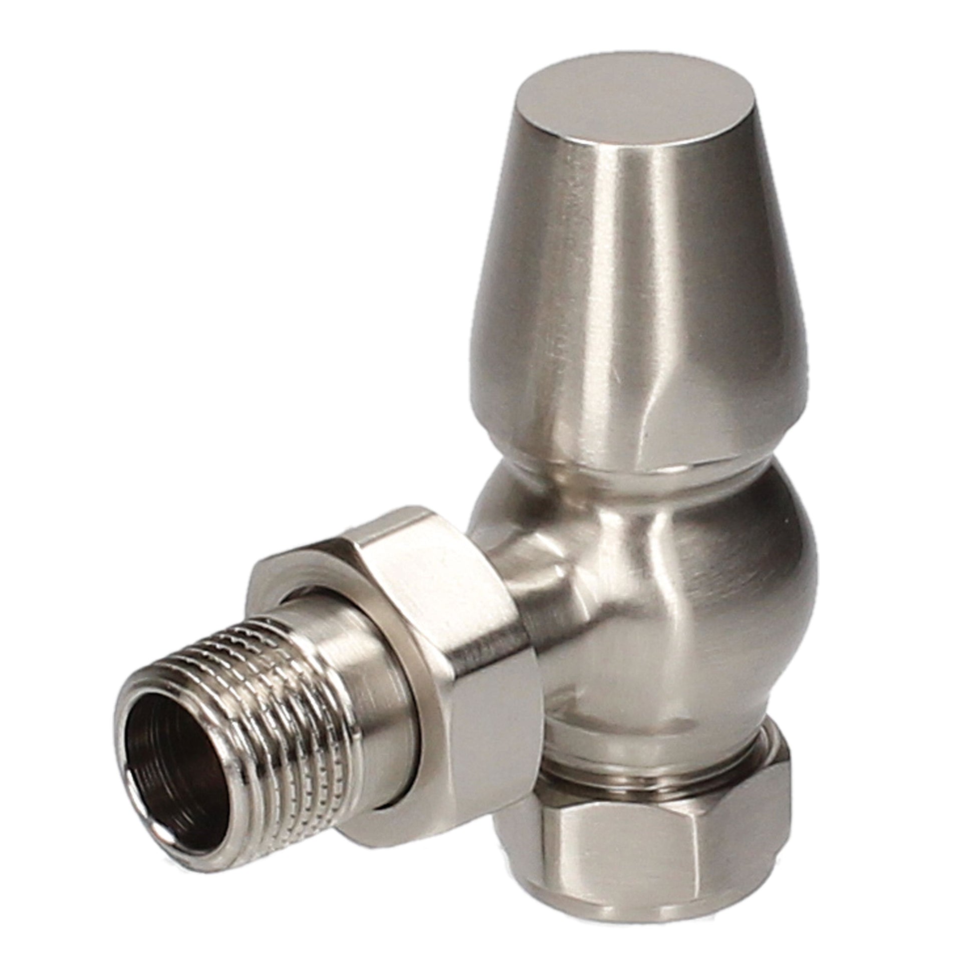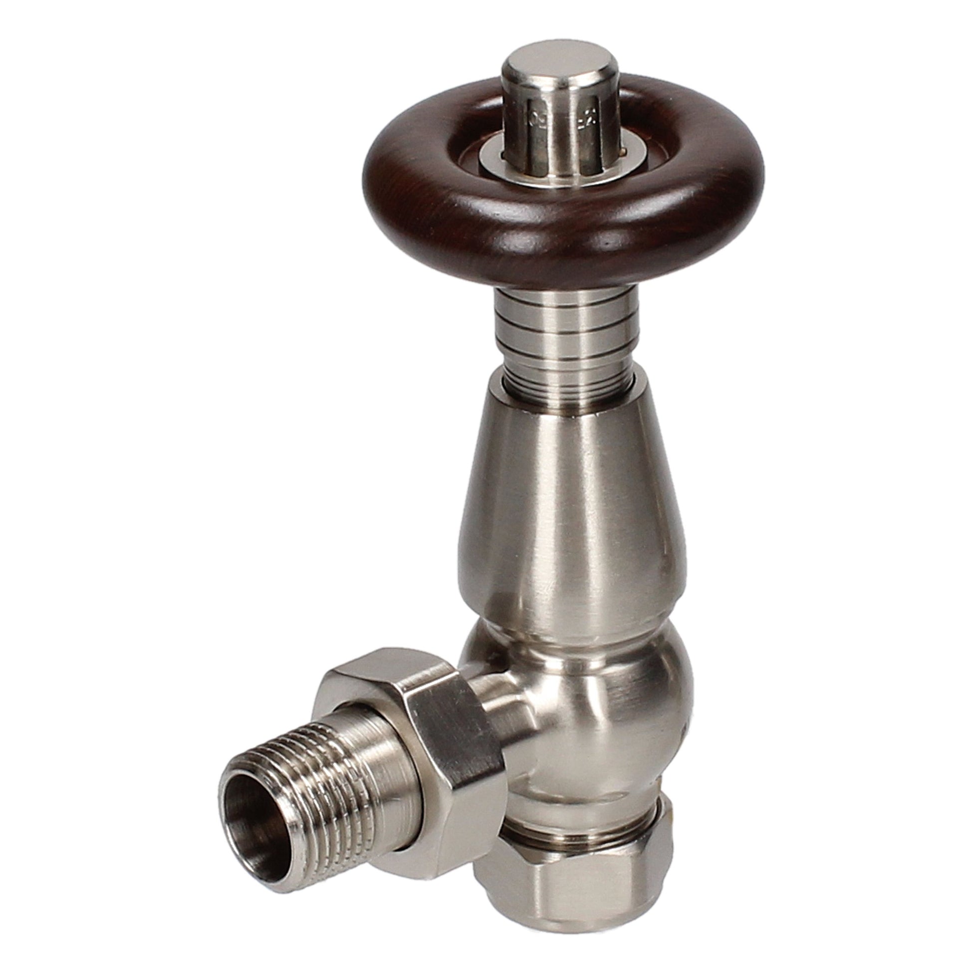 Traditional Heritage Thermostatic TRV Angled 15mm - Silver Nickel